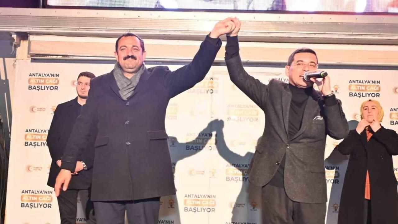 Antalya’nın sorunlarına da değinen Tütüncü, “Antalya’nın trafik, ulaşım, su baskınları ve alt yapı sorunlarının hepsini tarihin karanlık sularına gömüyoruz. Yeni okullar, yeni eğitim kurumlarıyla, turizme değer katan yepyeni çalışmalarla, projelerle Antalya’yı geleceğe hep beraber bambaşka bir heyecanla taşıyacağız. Yaptıklarımız zaten yapacaklarımızın teminatıdır. 31 Mart’ta sandıklar açıldığında Antalya’da Hakan Tütüncü, Kepez’de Rıza Sümer diyeceğiz “ diye konuştu.
