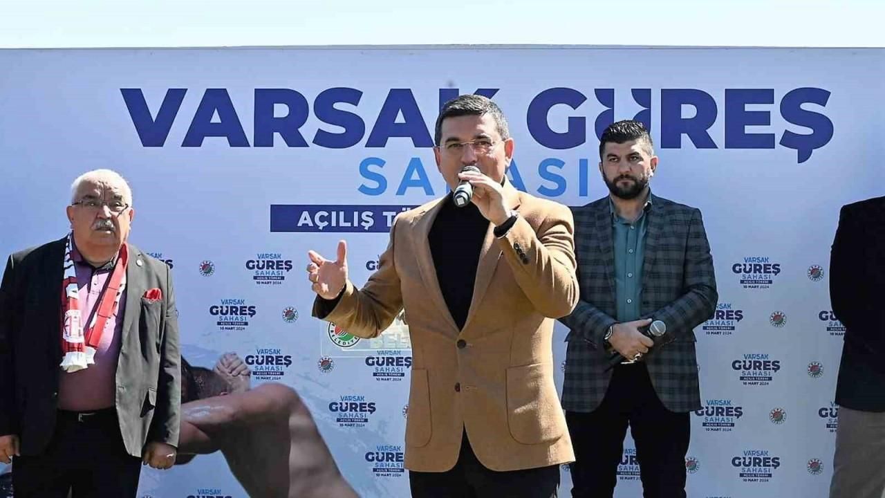 "Güzel bir geleneğe dönüşen Varsak Güreşleri’ne bir er meydanı yapalım istedik. Aktoprak Mahallesi’nde tesisi yapacağımız uygun olan araziyi bulduk. Projeyi hazırladık ve geçtiğimiz yıl güreş sahasının inşaatını başlattık. Projeyi hazırlarken sahayı biraz daha büyük yapalım istedik. Bu tesis ile Varsak’ın güreşte merkez olmasını arzu ettik. Sahaya üzeri kapalı bir protokol tribününü yaptık. Tesisin yapım maliyeti 20 milyon TL buluyor. Sahanın altyapılarını yaptık. Portatif tribünlerin kurulabileceği alanları da hazırladık. İnşallah önümüzdeki süreçte bu tesis, dört tarafına tribün yapılarak, Türkiye’nin ve Antalya’nın en güzeli olmaya aday bir güreş sahası olacak. AK Parti Kepez Belediye Başkan Adayımız Rıza Sümer de gelecek dönemde portatif tribünlerinin yerine kalıcı tribün yapmayı planlıyor” diye konuştu.