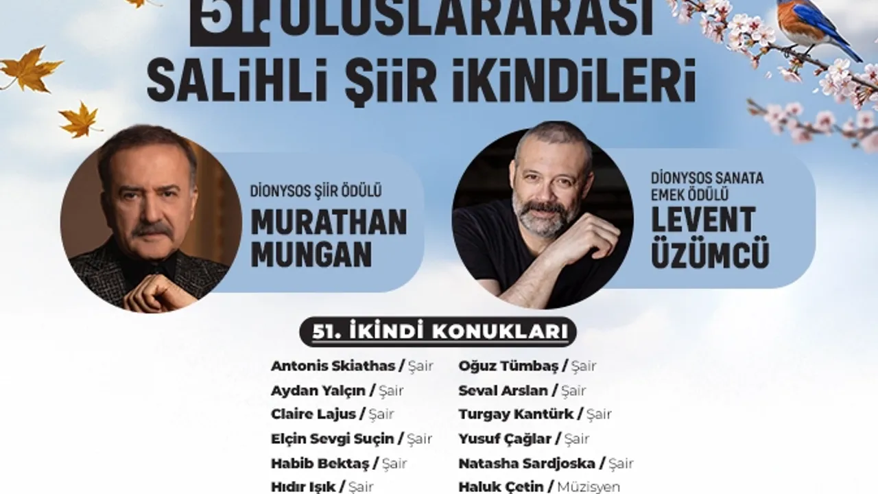 Yılda iki kez, ilkbahar ve sonbahar dönemlerinde düzenlenen etkinlik, 3 Mayıs 2025 Cumartesi günü saat 14.00’te, Salihli Belediyesi Zafer Keskiner Tiyatro Salonu’nda başlayacak. Şair ve Yazar Tuğrul Keskin editörlüğünde düzenlenen Salihli Şiir İkindileri’nin bu yılki programında, edebiyat ve sanat dünyasından önemli isimler yer alacak. Bu yıl etkinliğe şairler Antonis Skiathas, Aydan Yalçın, Claire Lajus, Elçin Sevgi Suçin, Habib Bektaş, Hıdır Işık, Natasha Sardjoska, Oğuz Tümbaş, Seval Arslan, Turgay Kantürk ve Yusuf Çağlar katılacak. Ayrıca, etkinlik kapsamında, ressam Reyhan Abacıoğlu’nun resim sergisi sanatseverlerle buluşacak, müzisyen Haluk Çetin ise “Şiir İçi Şarkılar” temalı özel bir konser verecek.