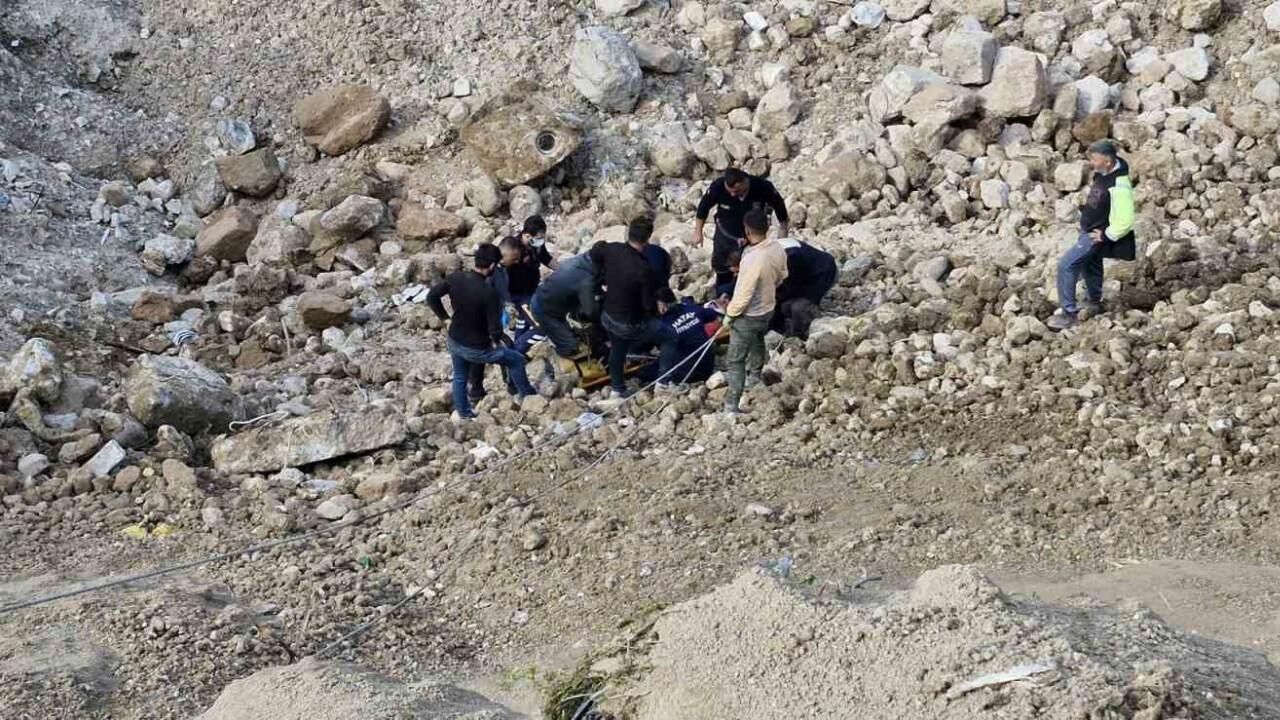 Hatay’da enkaz döküm sahasında üzerine kaya devrilen şahıs yaralandı.