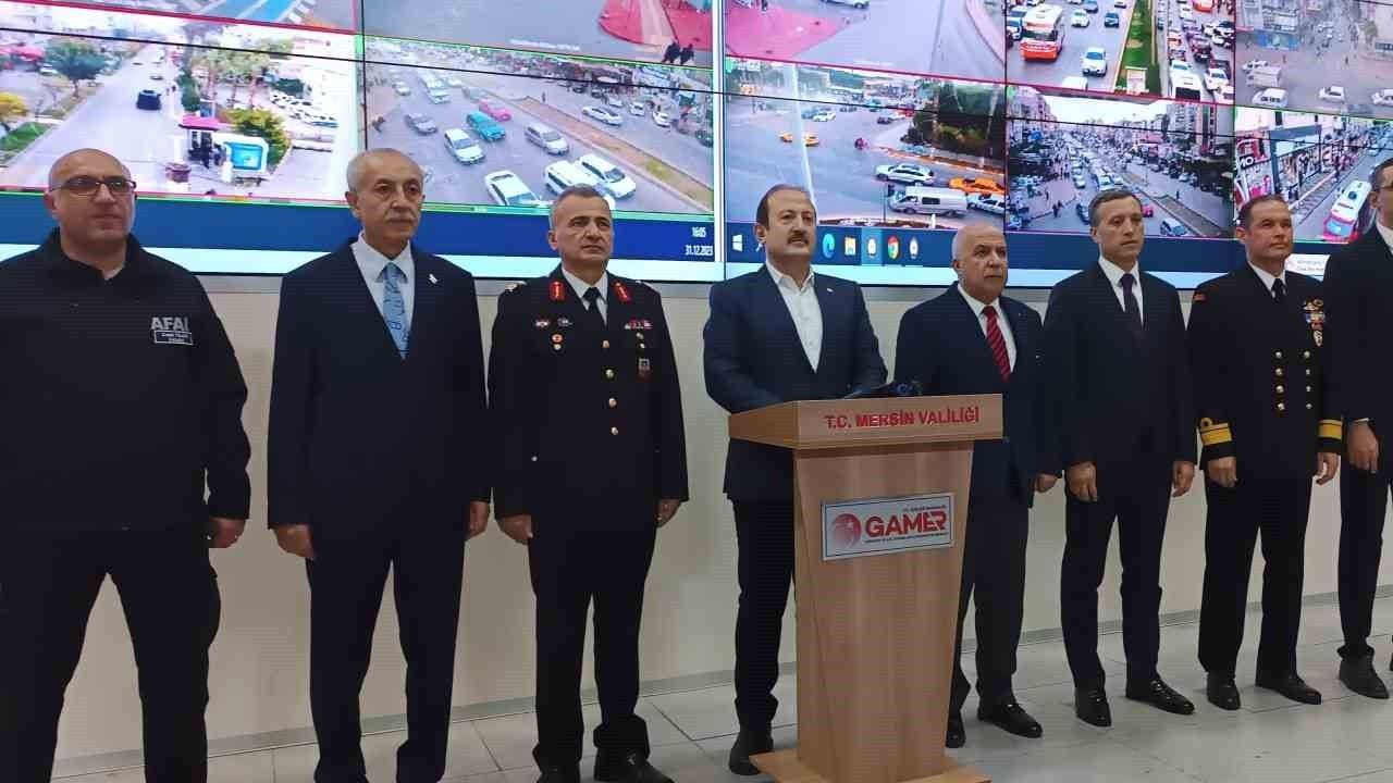 Mersin Valisi Ali Hamza Pehlivan, yeni yıl dolayısıyla her hangi bir olumsuzluğun yaşanmaması için tüm birimlerle gerekti tedbirlerin alındığı belirterek, "Bu çerçevede 209 tim, 385 ekip, 68 motorize ekip, 332 araç ve 2 drone olmak üzere toplamda 6 bin 687 personel görevlendirilmiştir. Bu personellerimizin hepsi görevinin başındadır" dedi.
