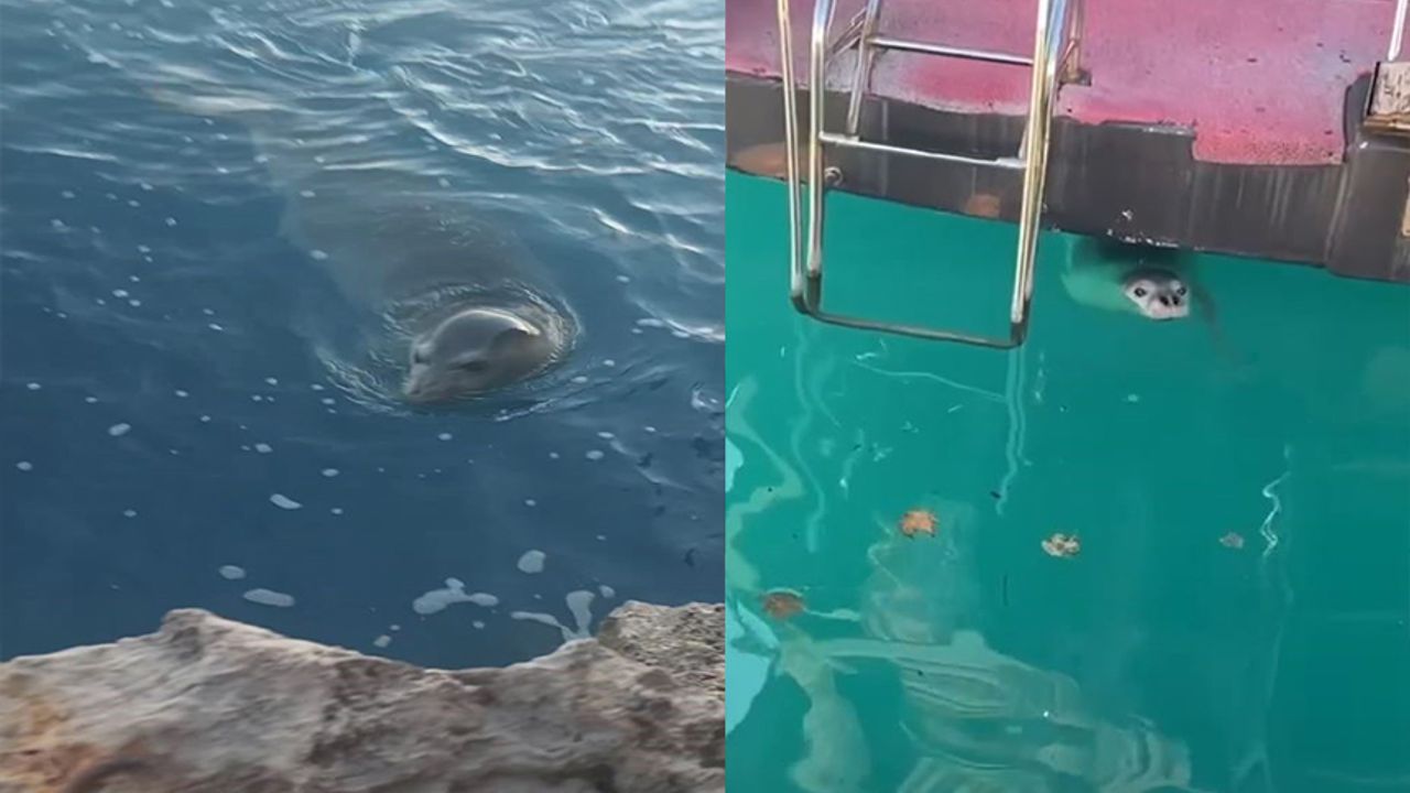 Antalya'nın Muratpaşa ilçesinde falezlerin denizle buluştuğu noktada balık tutmak isteyen vatandaşlar, tükenme tehdidiyle karşı karşıya olan Akdeniz fokuyla karşılaştı. Gördüğü fok karşısında şaşıran balıkçının, “Bak bak foka bakın, foka? Ne...