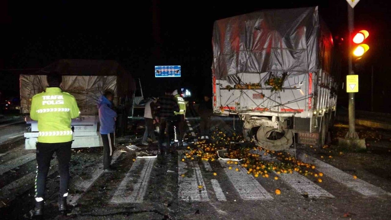 Kırmızı ışıkta duran mandalina yüklü kamyona tır çarptı, kara yolu mandalina bahçesine dündü