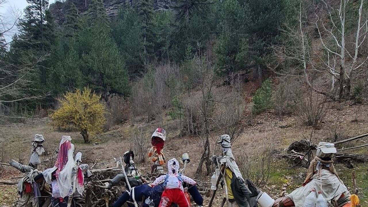 Kahramanmaraş’ta bir vatandaş yabani hayvanları korkutmak için cansız manken yaptı.