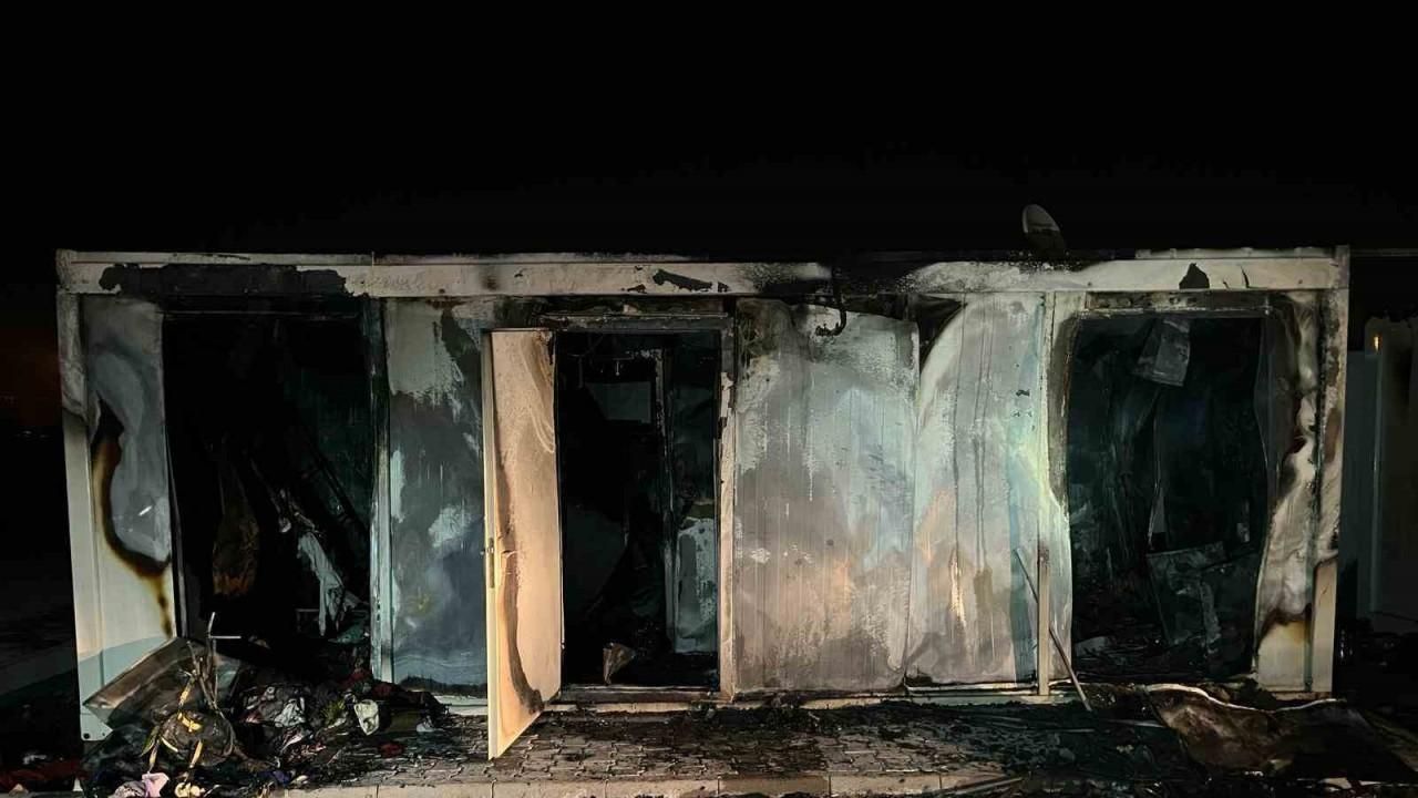 Hatay’da geçici yaşam merkezinde meydana gelen yangında depremzede vatandaşların yaşadığı konteyner kullanılmaz hale geldi.