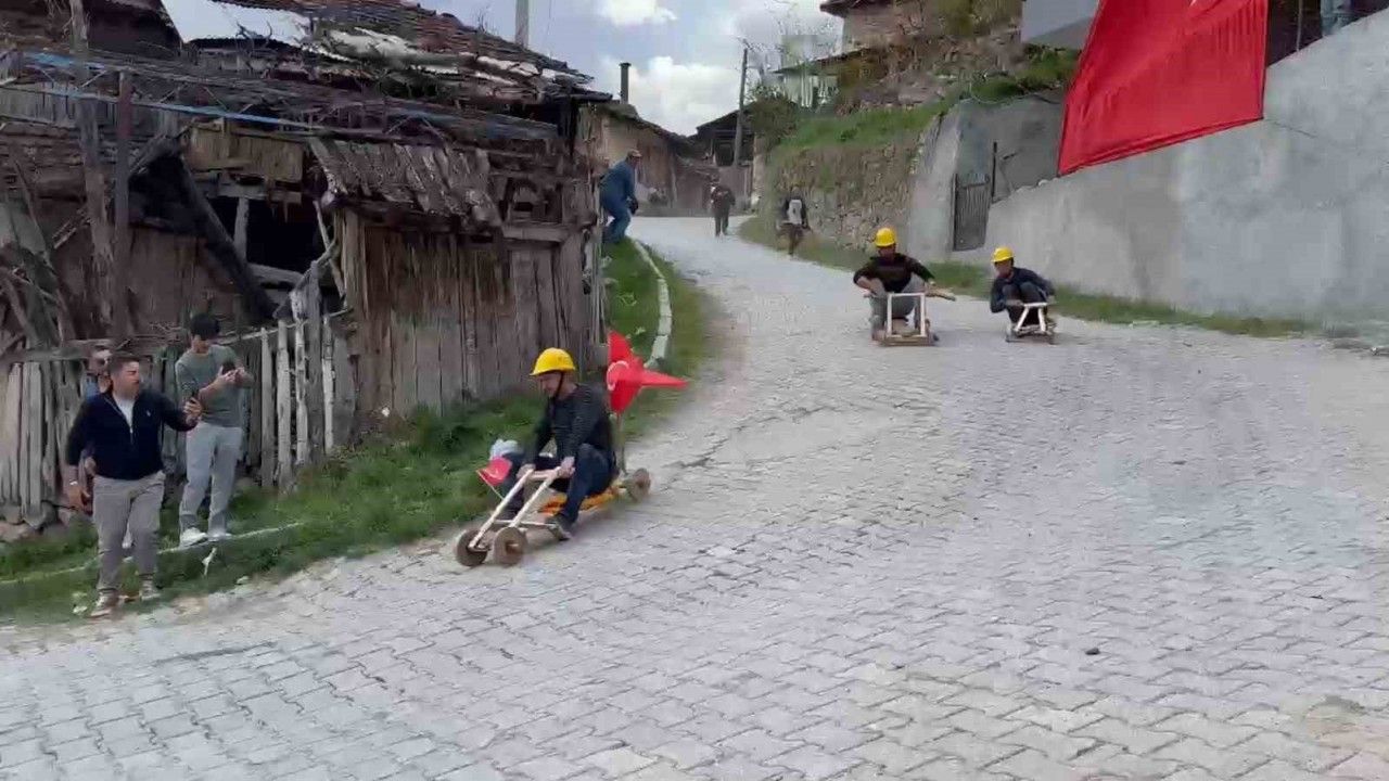 Yaptıkları arabalarla köy içerisinde yokuş aşağı yarışan gençler, düşe kalka tamamladıkları yarışla hem köylülerin yüzünü güldürüyor hem de bir arada olmalarını sağlıyor.