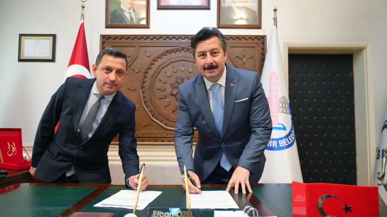 Bursa Yenişehir Belediye Başkanı Ercan Özel, Yenişehir Ekmek Sanayi A.Ş. personelinin 50 bin 500 TL promosyon alacağı anlaşmayı Halk Bankası Yenişehir Şube Müdürü Salih Civelek ile birlikte imzaladı.BURSA (İGFA) - Bursa Yenişehir Belediyesi’nin iştirak şirketi olan Yenişehir Ekmek Sanayi A.Ş. (YESAŞ) personelinin alacağı promosyon ücreti belli oldu. 30 çalışanı bulunan YESAŞ’ın açtığı ihaleye 6 banka katıldı.