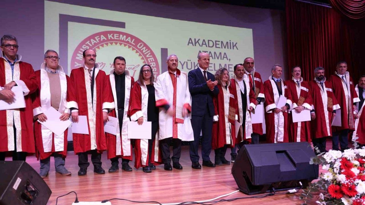 Hatay Mustafa Kemal Üniversitesi’nde düzenlenen ‘Akademik Atama, Yükselme ve Akademik Başarı’ ödül töreni etkinliğine; Vali Yardımcısı Gökay İçen, Yükseköğretim Kurulu (YÖK) Başkanı Erol Özvar ve Mustafa Kemal Üniversitesi Rektörü Veysel Eren katıldı. Saygı duruşu ve İstiklal Marşı’nın okunmasının ardından YÖK Başkanı Özvar, açıklamalarda bulundu.