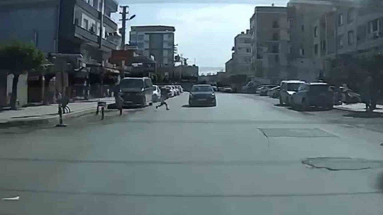 Hatay’da yola fırlayan çocuğa çarpmamak isteyen otomobil sürücüsünün karşı yönden gelen otomobille kafa kafaya çarpıştığı kaza, araç kamerasına yansıdı.