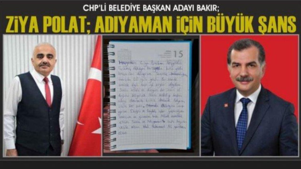 Geçmiş dönemde Cumhuriyet Halk Partisi (CHP) Adıyaman Belediye Başkan Adayı olan Zeynal Bakır’dan AK Parti Adıyaman Belediye Başkan Adayı Ziya Polat’a övgü dolu sözler.